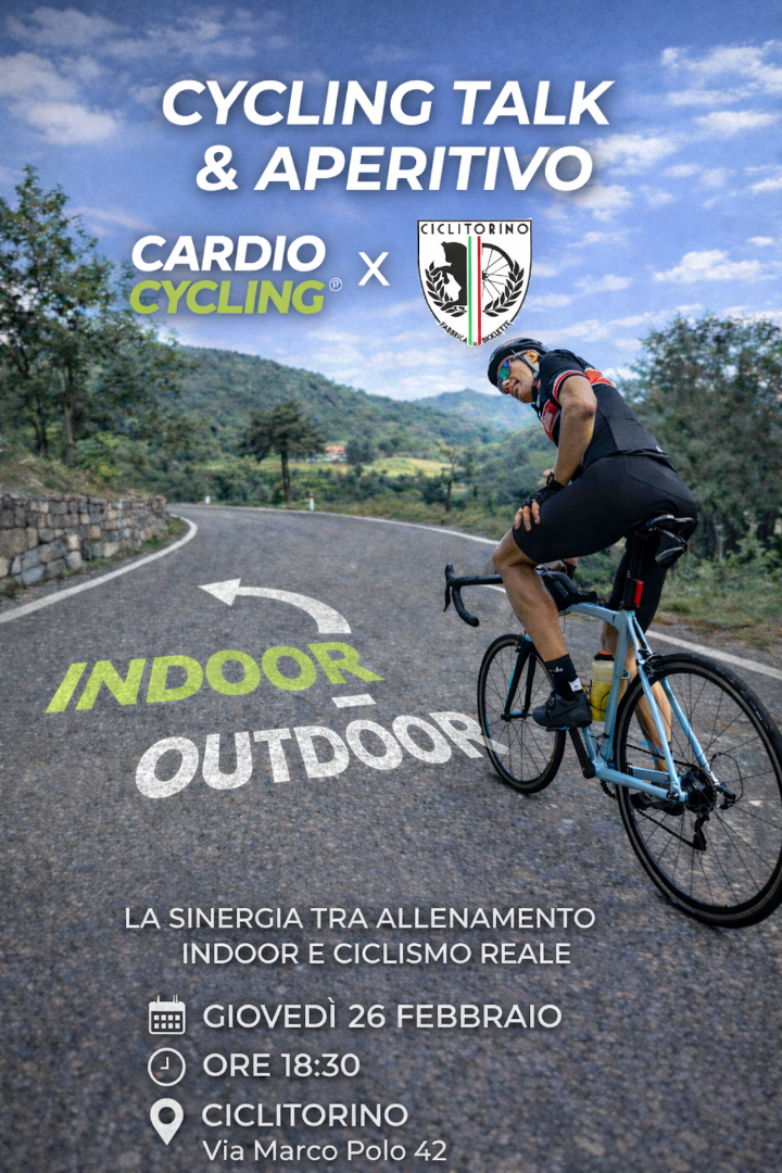 Un incontro tecnico e pratico per Riders: come far lavorare Cardio Cycling e bici su strada nella stessa direzione.Chiudiamo con aperitivo.